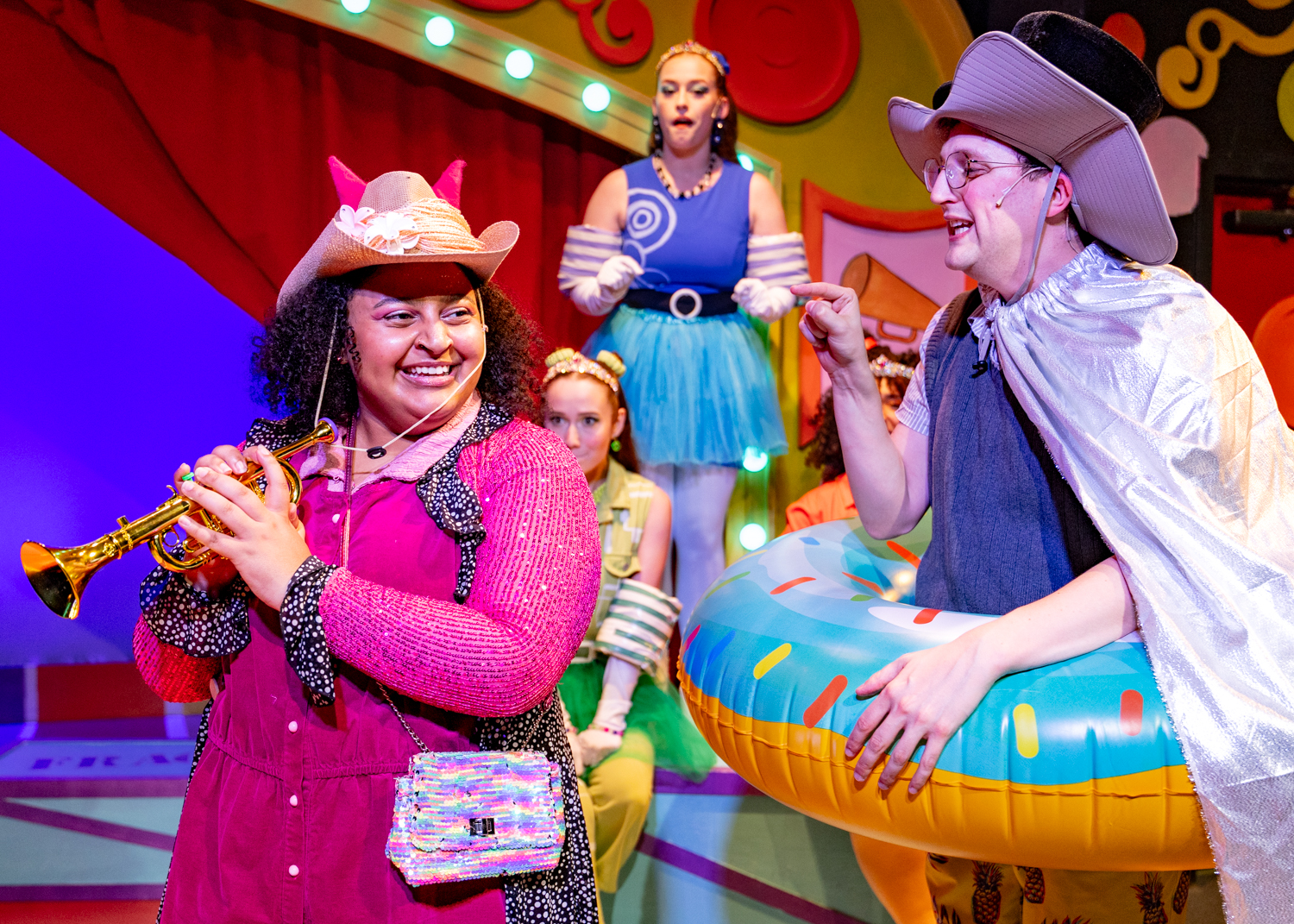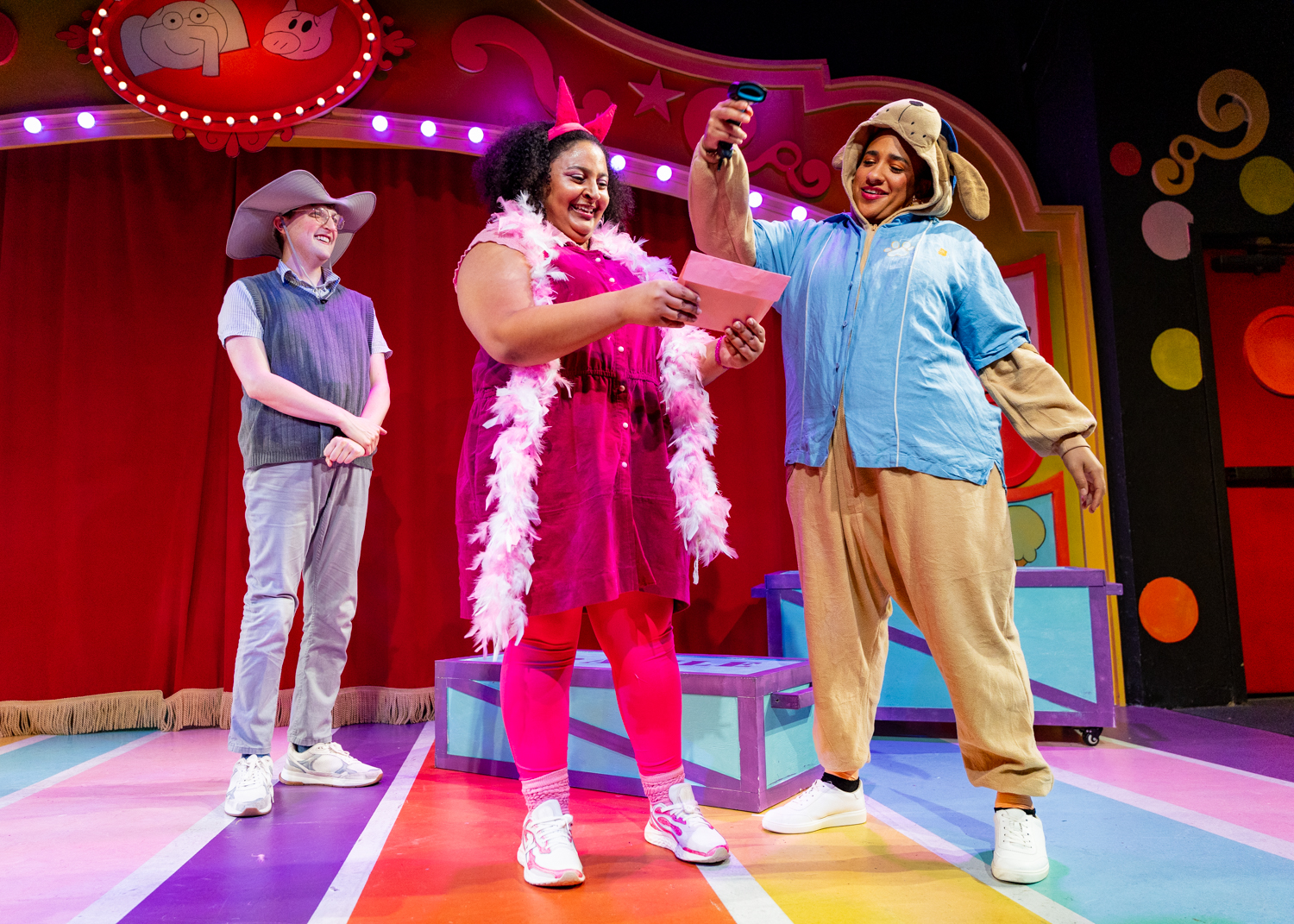 I love photographing shows like Elephant and Piggie’s We Are in a Play for similar reasons to why I enjoy commedia: in colorful, cartoon worlds like these, life makes sense, characters encounter difficulties and figure out to how resolve them equitably, and in the end, everyone has learned something; nothing too dreadful happens. The plays are full of music, joy, laughter. They’re a very lovely place to be for an hour.