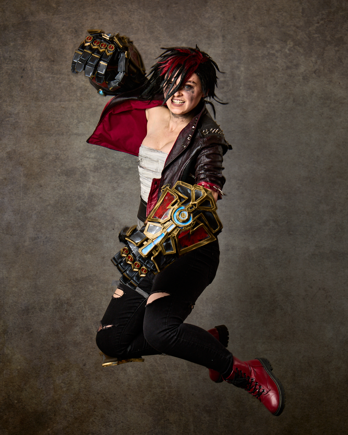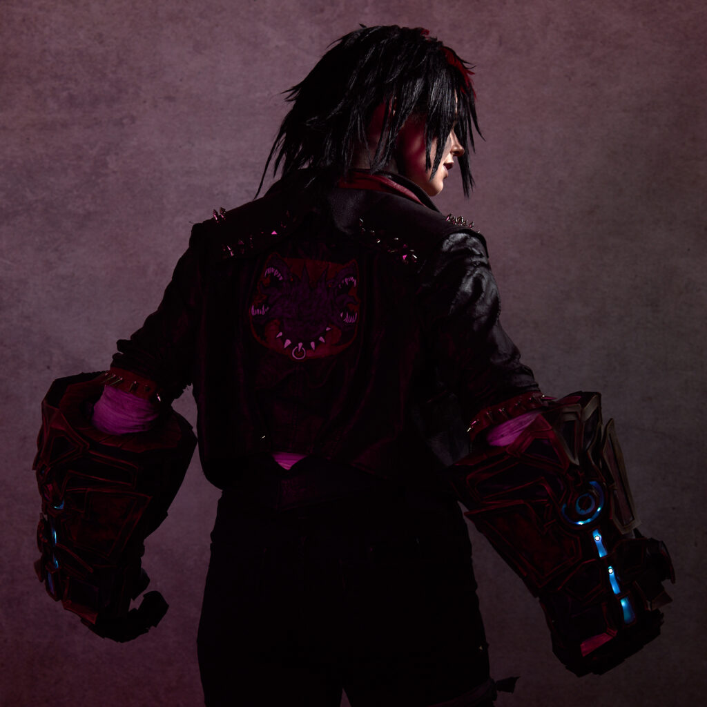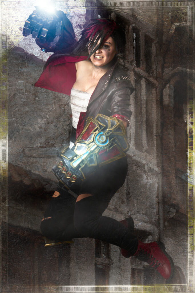 I’ll sign off this time with another of Jess’s ideas and a favorite among favorites for this session—a true Vi character shot that demonstrates the fully articulated gauntlets Jess crafted for her Vi cosplay. I can’t wait to see what she makes next.