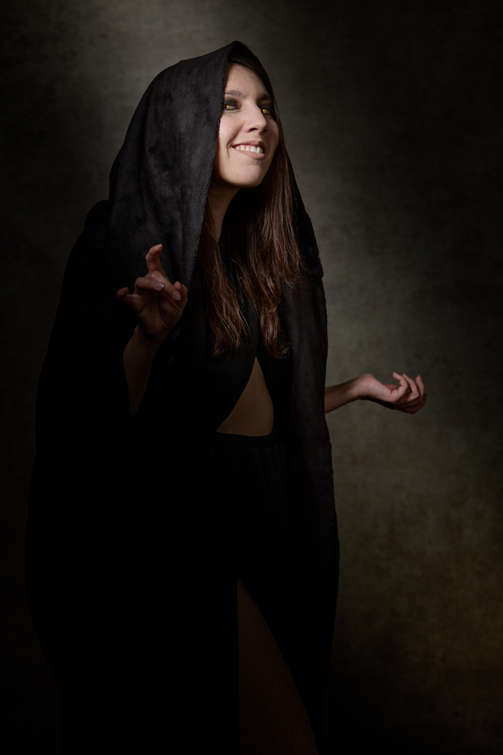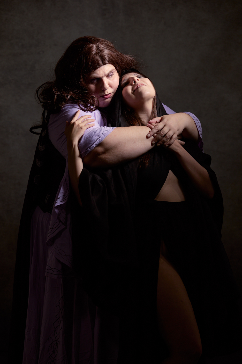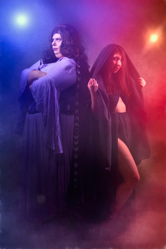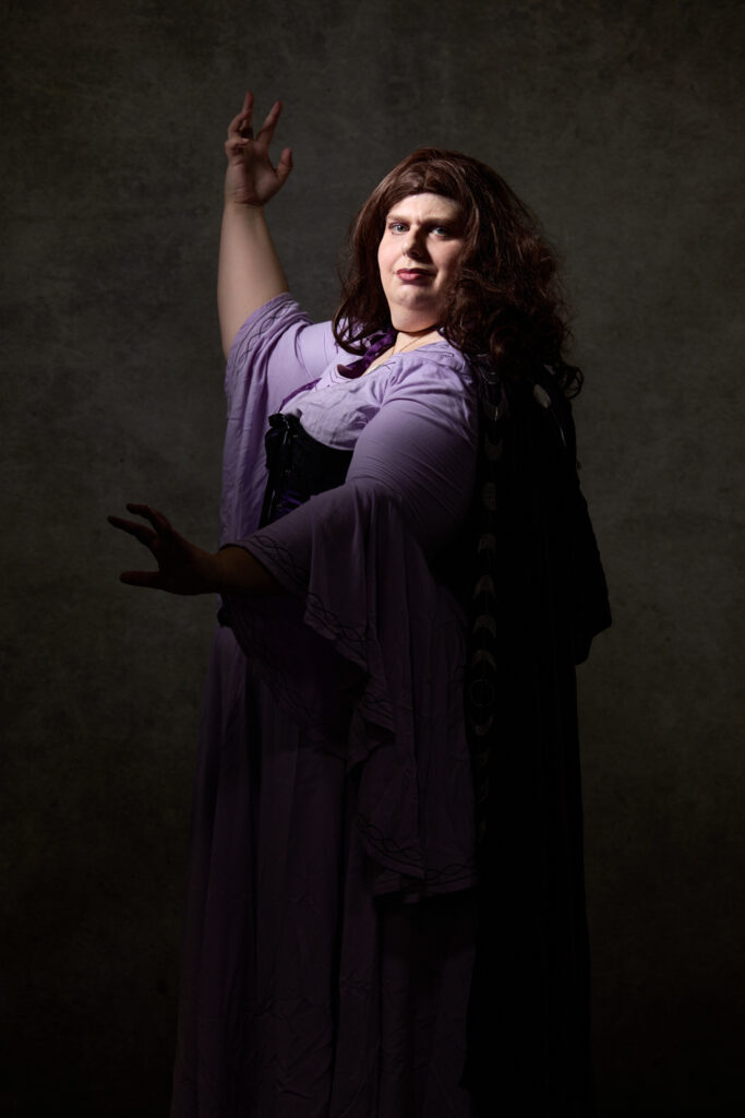 This Gen Con, Laura and Deana attended as Agatha Harkness and Rio Vidal/Death, the characters played by Kathryn Hahn and Aubrey Plaza in Marvel’s Agatha All Along. For these characters, I used spooky, restrictive light with lots of shadow to make moody portraits.