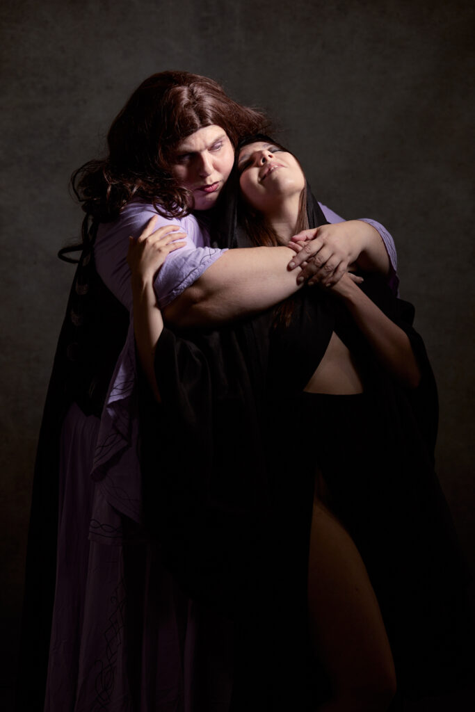 Using techniques and tools taught by photo artist Chris Koeppen, I transferred the pentacle idea from Laura’s previous edit into my favorite of Laura and Deana’s pictures in the Caravaggio light. Inspired by the idea of the pentacle as a binding symbol, I formed the pentacle around their embrace—magically inseparable. I took some extra time to do this in thanks for Laura’s and Deana’s personal friendship, as well as Deana’s support of Distant Era over many years and photographs.