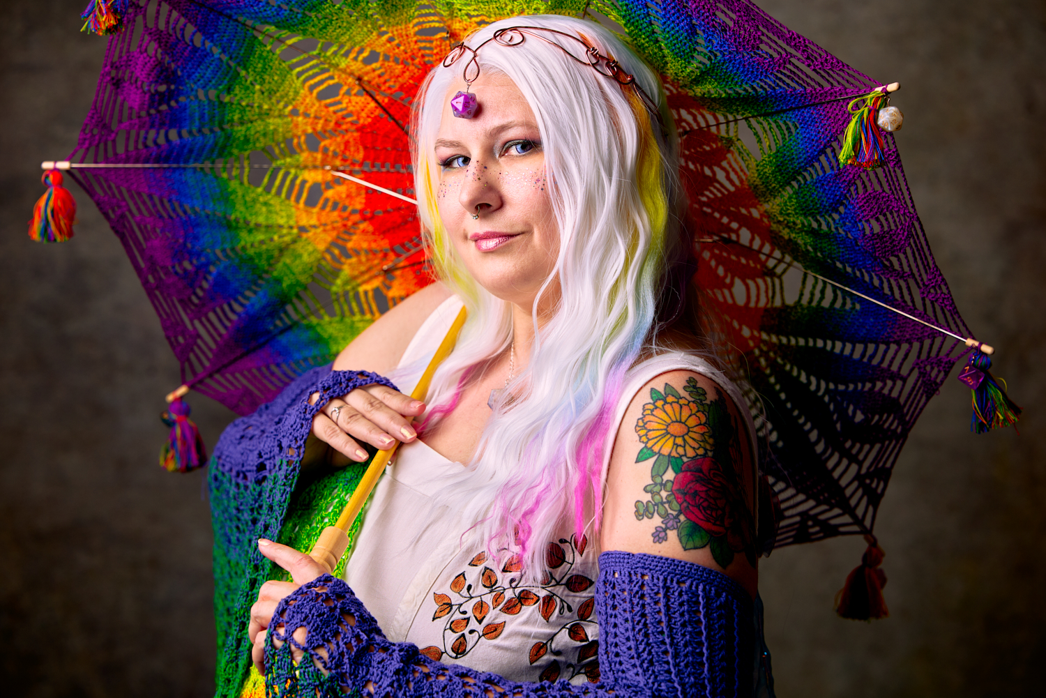 This week, we return to the mini portrait sessions from Gen Con 2025, this time featuring cosplayer and crocheter Sarah Lemons in her Natty the Dice Fairy cosplay.