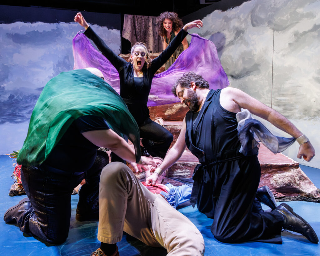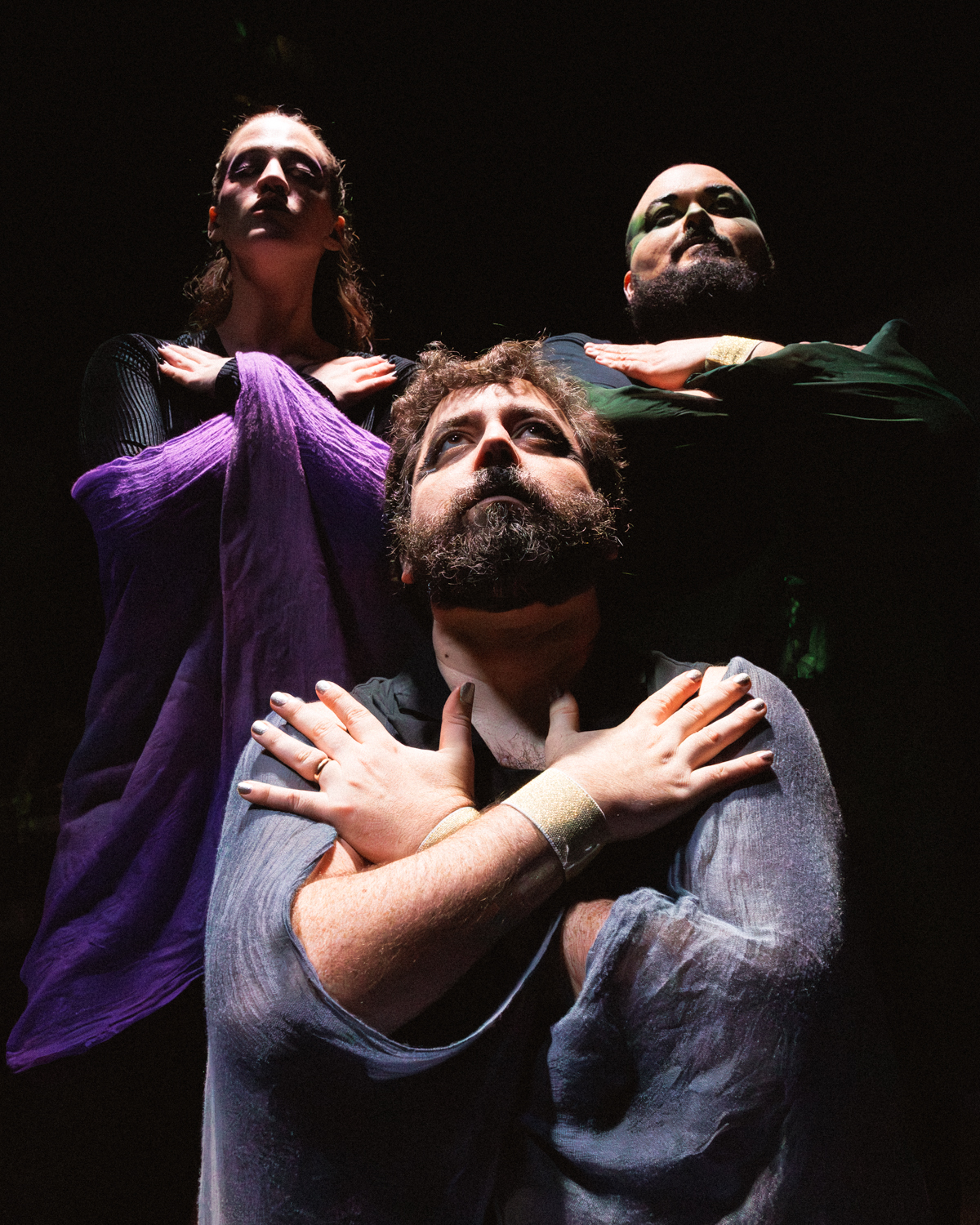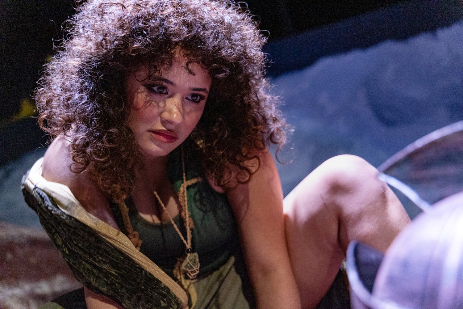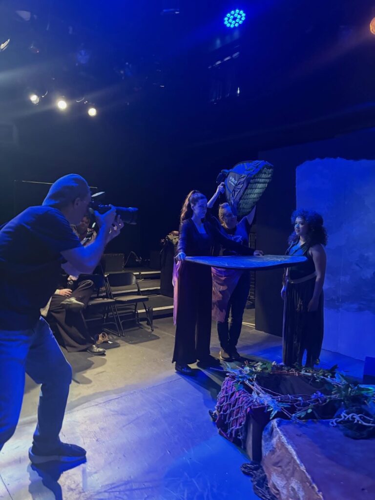 After the portraits, we captured various moments from the show. For these, we moved around and photographed the action from various angles. We also made sure to capture some of the cool projections designed by Annie A, notably the scene where there’s an eclipse onstage. And we got some dynamic shots of the fight and intimacy work choreographed by Bianca Thompson (seen in the digital pages of The All Worlds Traveller in Three of Cups’s Macbeth).