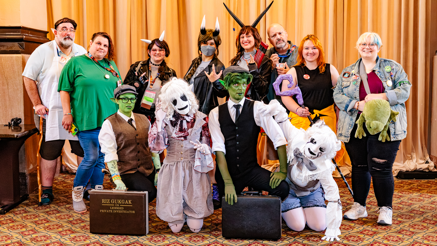 The Dimension 20 Cosplay Meetup is a group in which the participants arrive costumed as characters from the show’s various stories. The event is a place to gather, hang out, and have fun with fellow Dimension 20 enthusiasts. The event is popular enough (again, the show sold out Madison Square Garden this year) to attract a group large enough to hire a photographer (that me!) to capture.