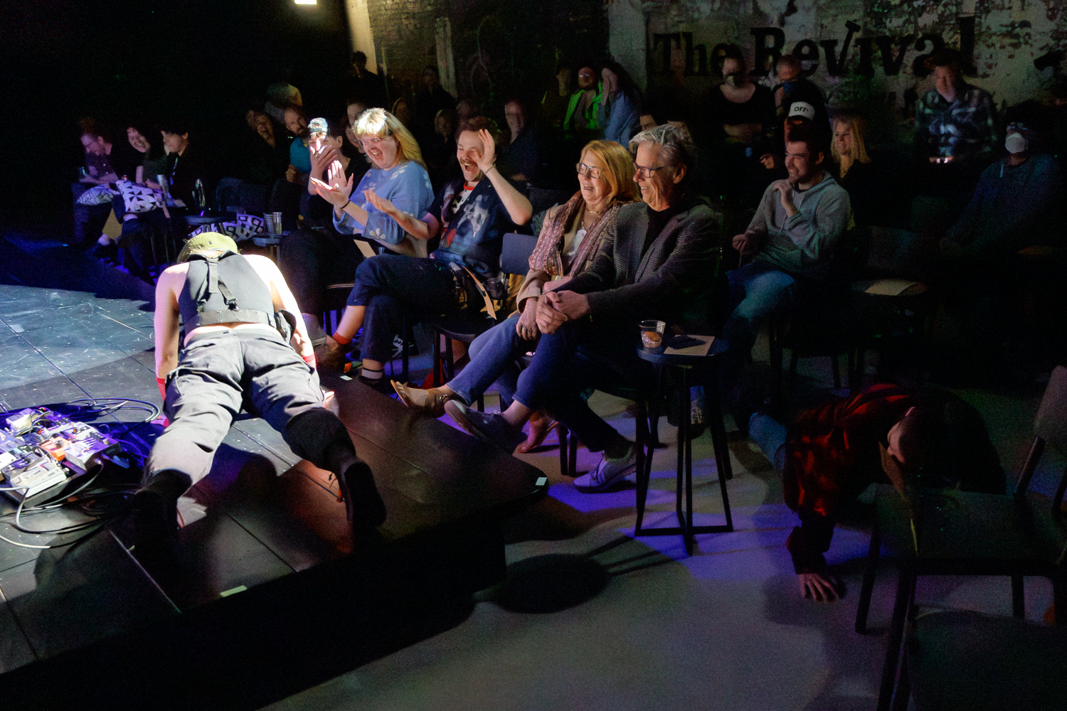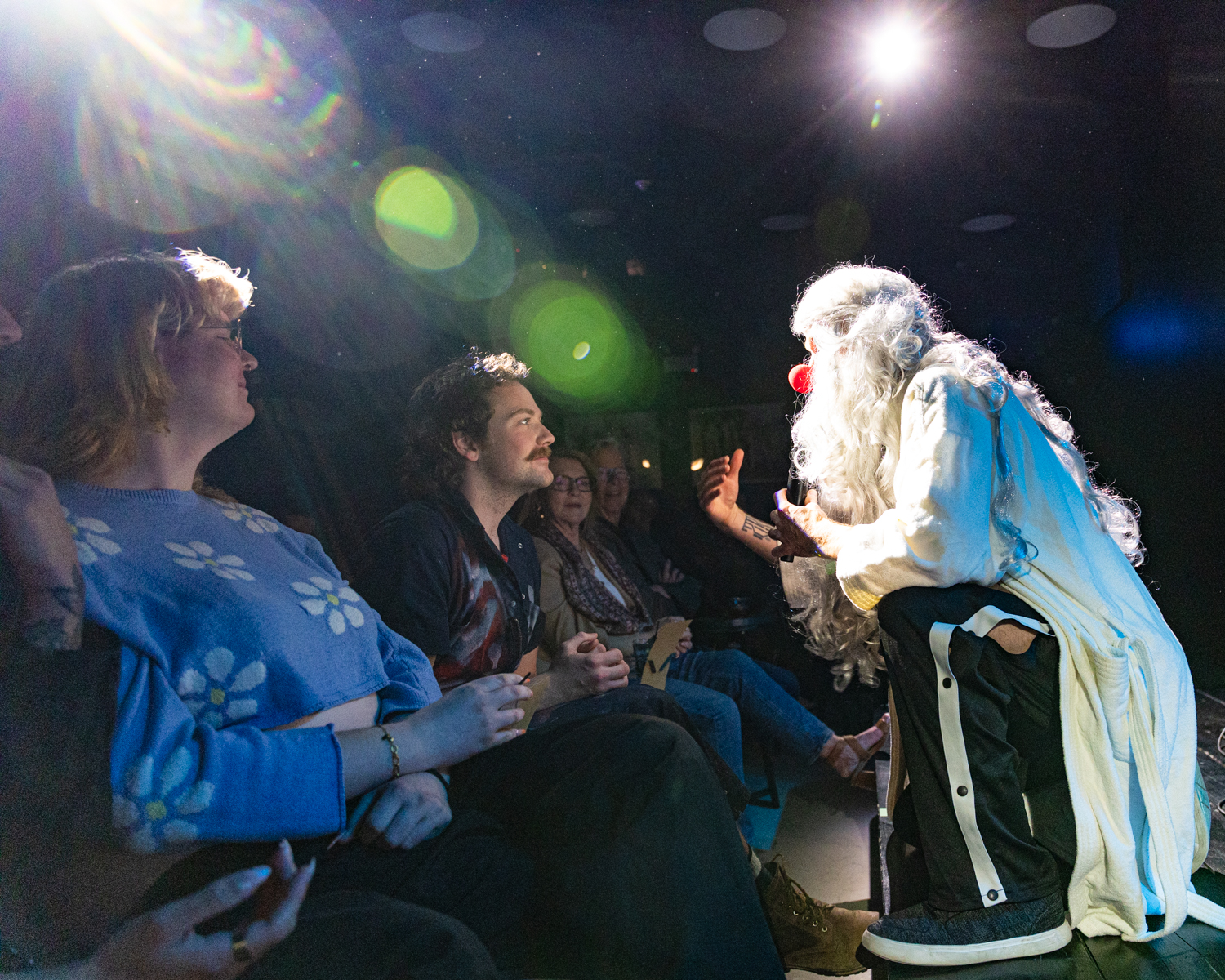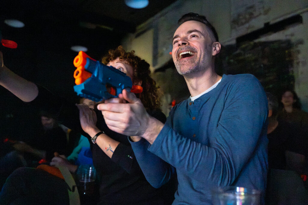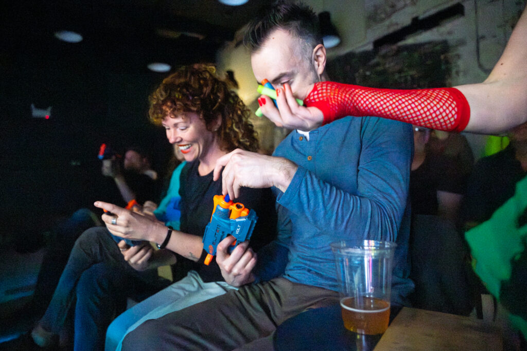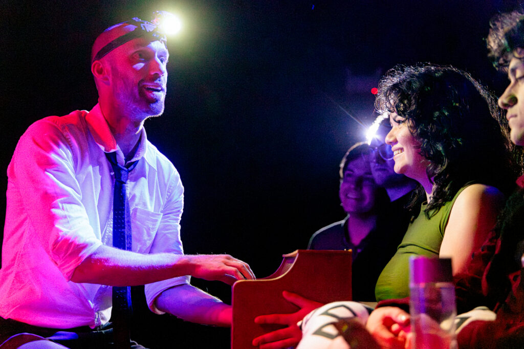As the show progressed, I tried to capture moments of interaction. This being a show about creating a shared positive experience among the members of the audience, it seemed important to check in and see how that was going. I particularly enjoy shows that engage the audience, as I spoke about recently in The Terror Cottas experimental theatre group’s production of The Ostrich and anything Birch House Immersive produces. As with recent jobs photographing The Ostrich and Hitch*Cocktails, I laughed out loud while shooting Broken Planet Show, which is just my kind of weird.