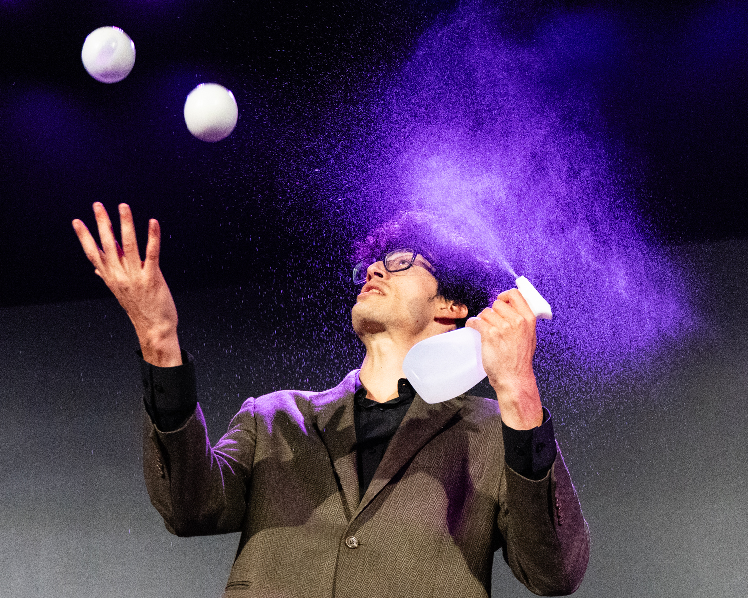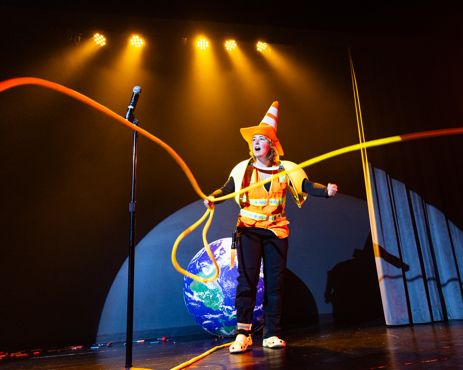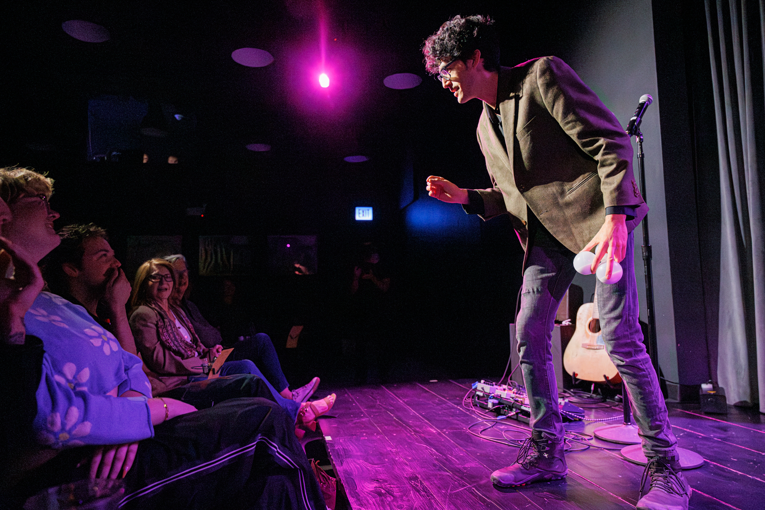 As the show progressed, I tried to capture moments of interaction. This being a show about creating a shared positive experience among the members of the audience, it seemed important to check in and see how that was going. I particularly enjoy shows that engage the audience, as I spoke about recently in The Terror Cottas experimental theatre group’s production of The Ostrich and anything Birch House Immersive produces. As with recent jobs photographing The Ostrich and Hitch*Cocktails, I laughed out loud while shooting Broken Planet Show, which is just my kind of weird.