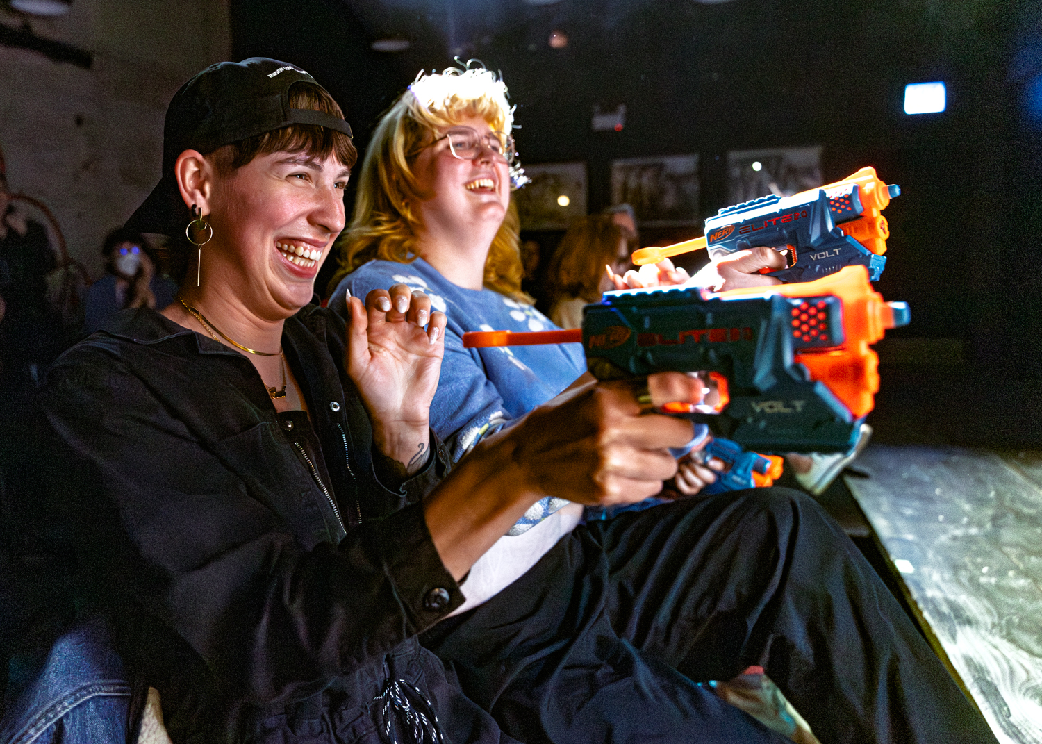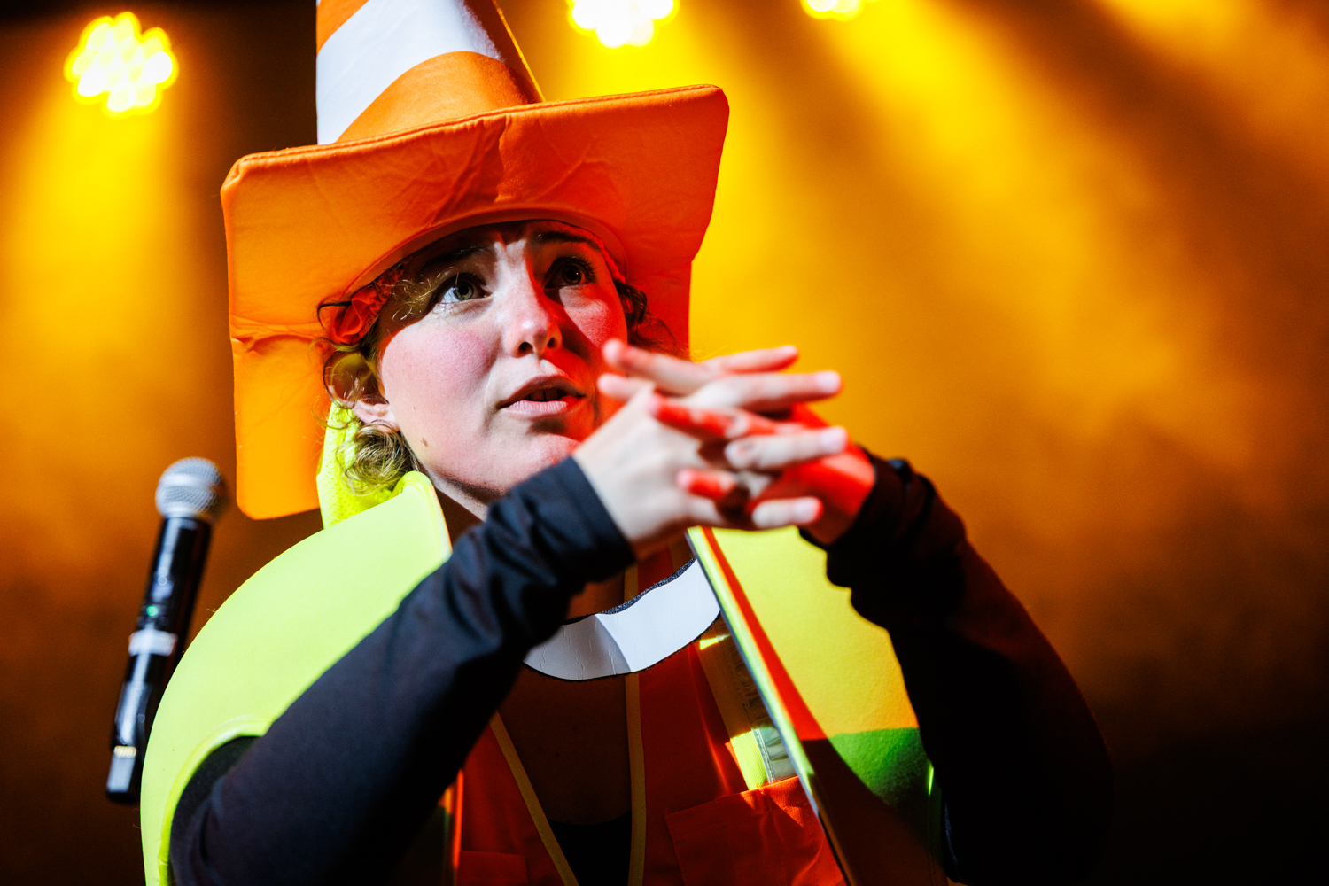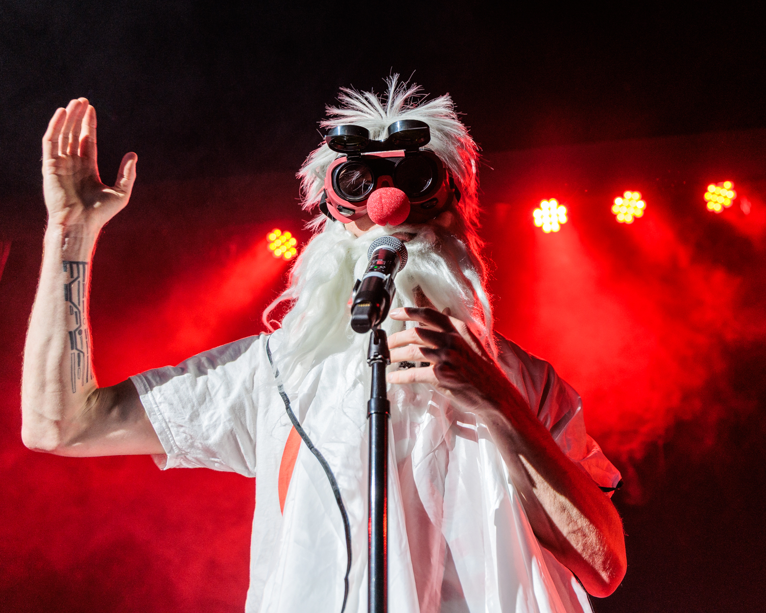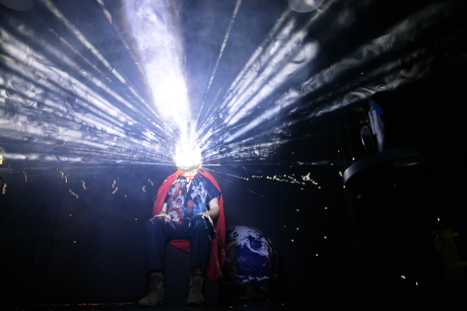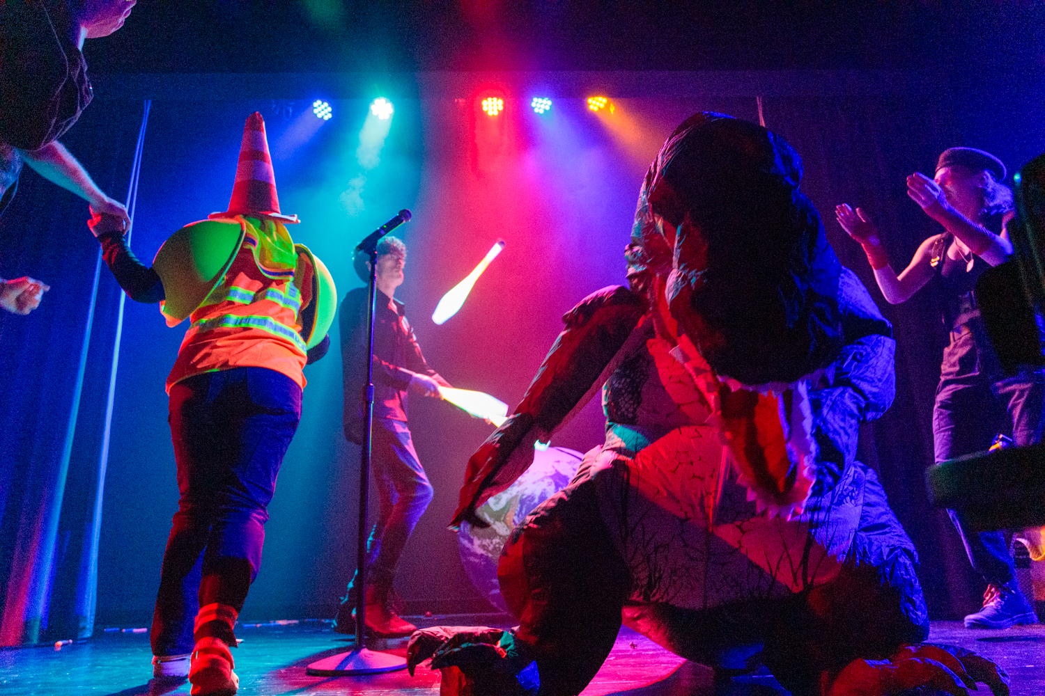 At the end of the evening, I had a brilliant time running around in the haze photographing the cavalcade of god-clowns, apocalypse babies, dogs, cats, raptor ravers, obsessive safety cones, jugglers, mothmen, militant lovers, vacuum cleaners, and disco-ball-heads while dodging Nerf bullets. And this was only one iteration of this variety-style show, which changes cast and characters as different acts participate in different shows.