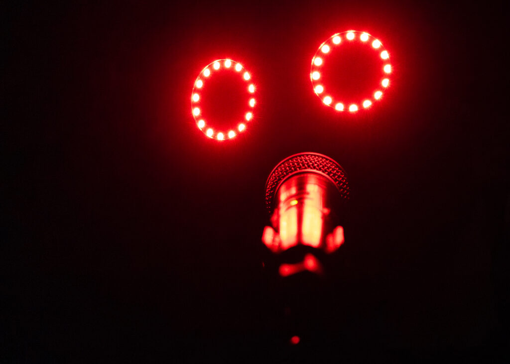In addition, there are parts of Broken Planet Show that take place in total darkness, without any light except what the performers are wearing—the Mothman piece, for instance, in which the only thing the camera can capture are the glowing red discs that serve as the Mothman’s eyes.