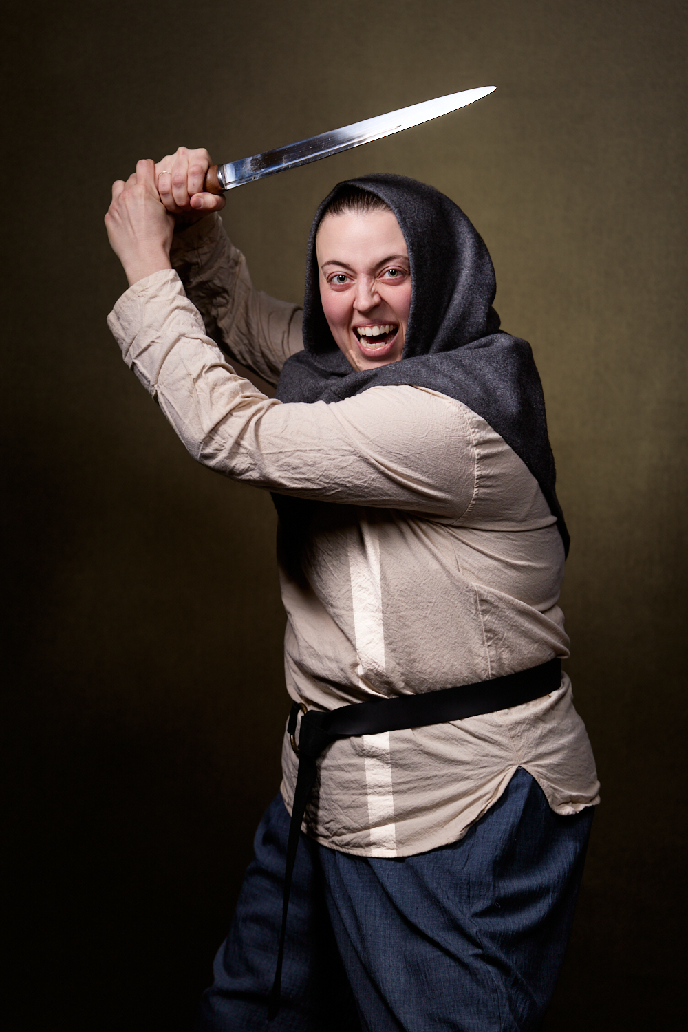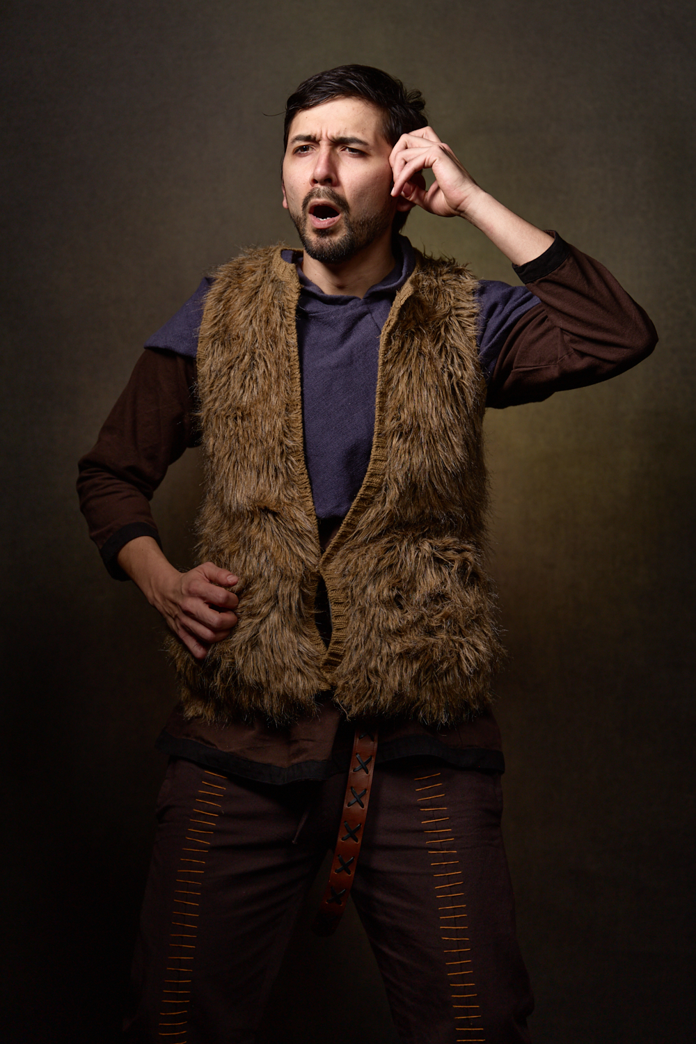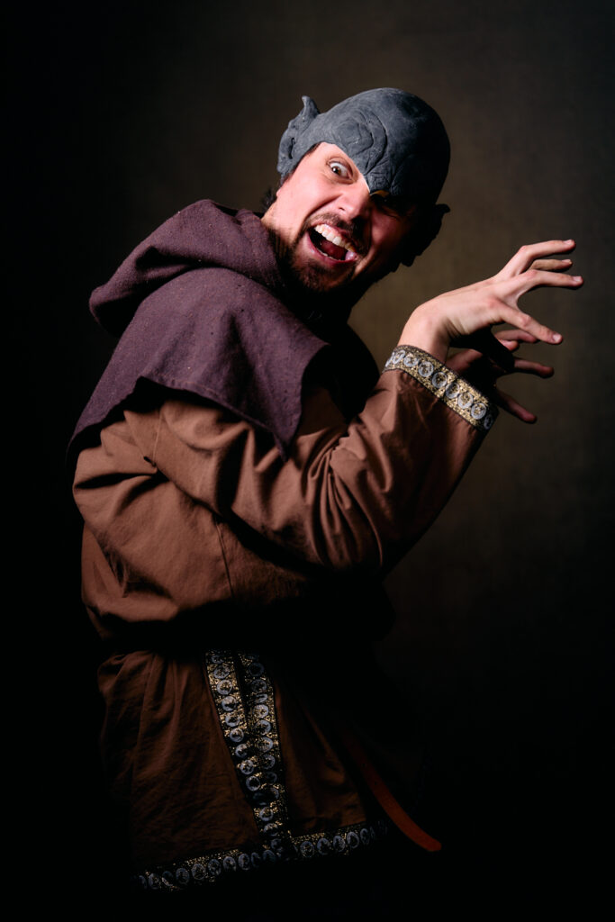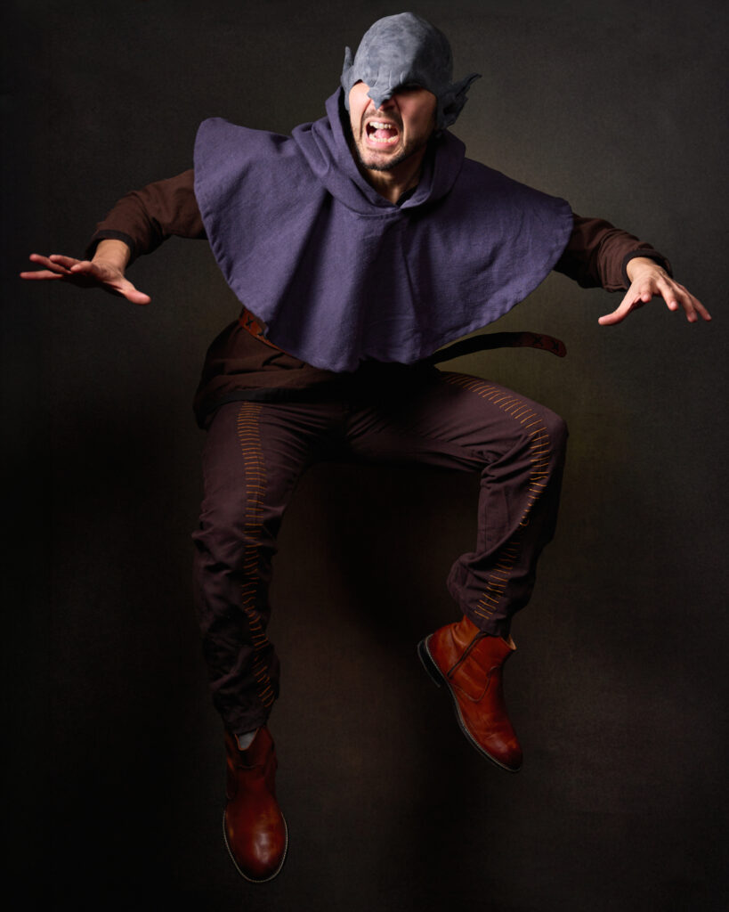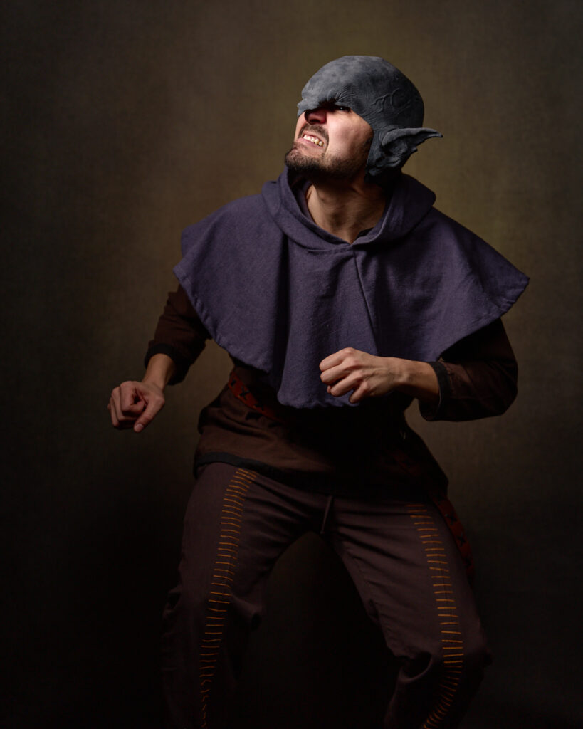 This time, I brought my portrait setup to Young People’s Theatre of Chicago to get some character shots YPTCHI could use to promote the show. Once again I went with a brown background because those tones and textures suggest The Hobbit to me. This time, I went with a very low key look, emphasizing shadow and contrast. As is usually the case for character portraits, we fire through them very quickly in our limited time. The actors were a joy to work with, and we had a lot of fun making them, as evidenced by the big goblin energy below.